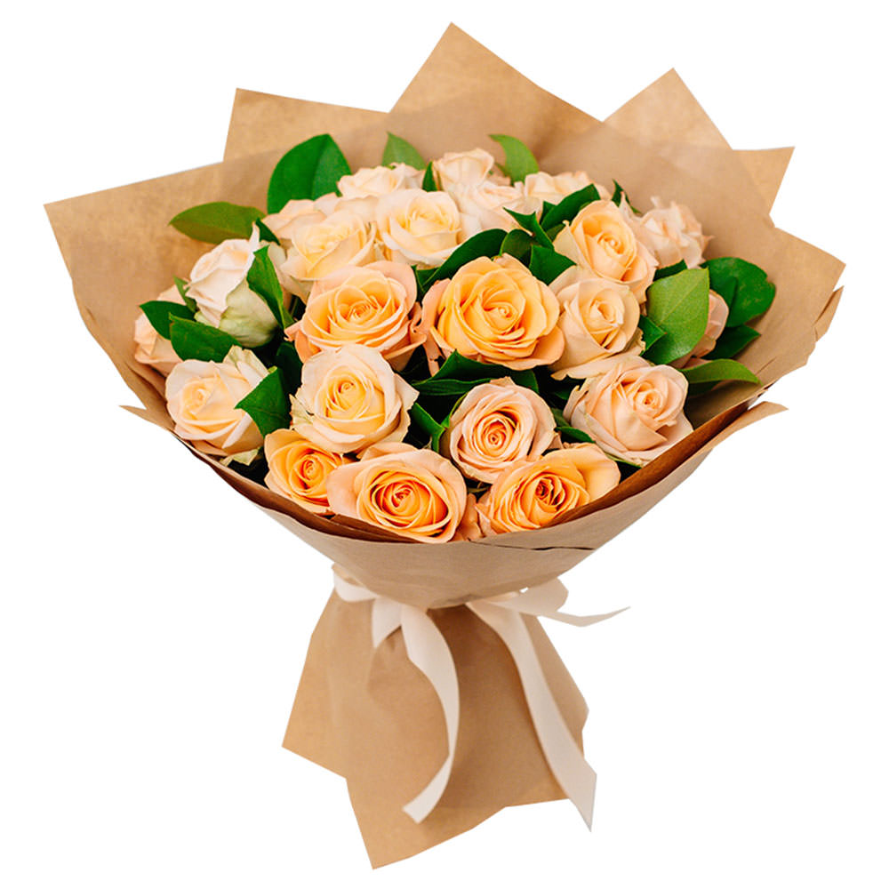 Роза одноголовая персиковая, зелень.