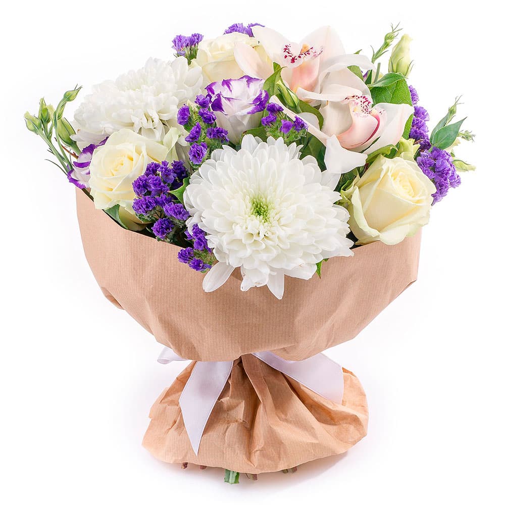 Хризантема одноголовая, роза одноголовая, орхидея, статица.