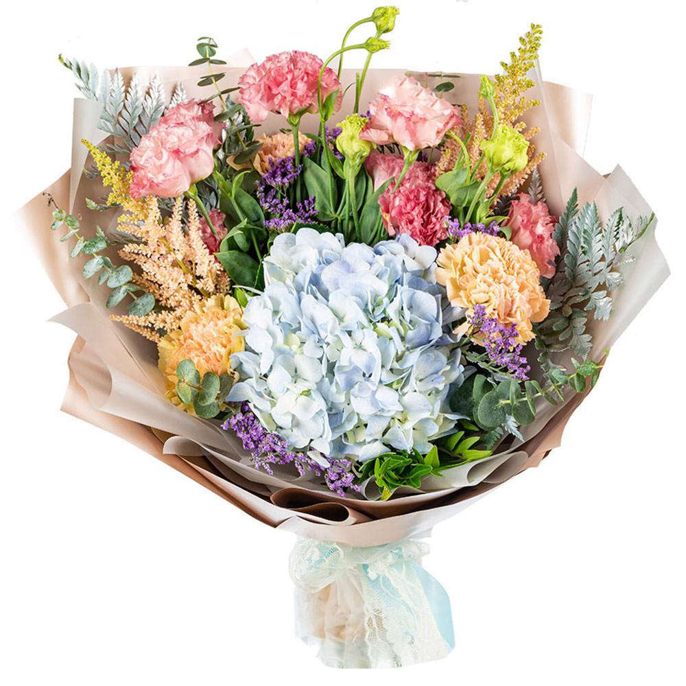 Гортензия, гвоздика, эустома, самшит, чико.