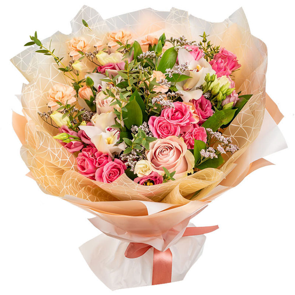 Роза кустовая, роза одноголовая, орхидея, фисташка, гипсофила.
