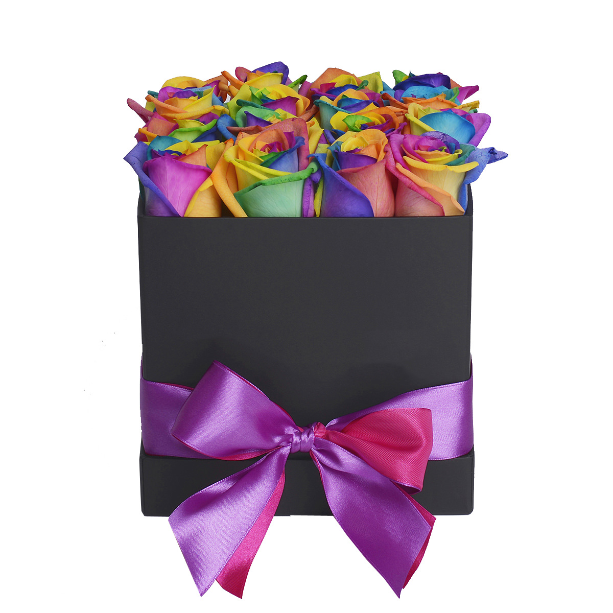 Цветы в коробке «Радужные Розы» с гарантией качества, цены и быстрой доставки!