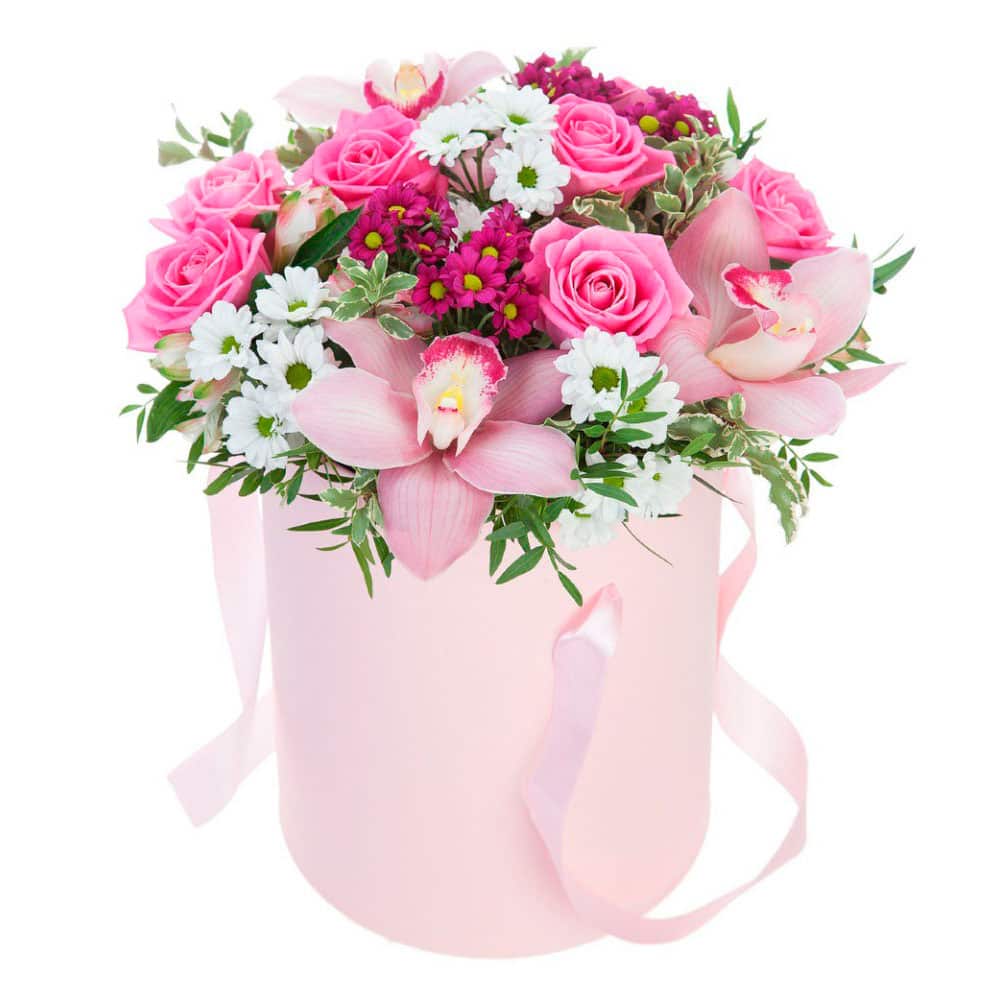 Цветы в коробке «Романтика» с гарантией качества, цены и быстрой доставки!