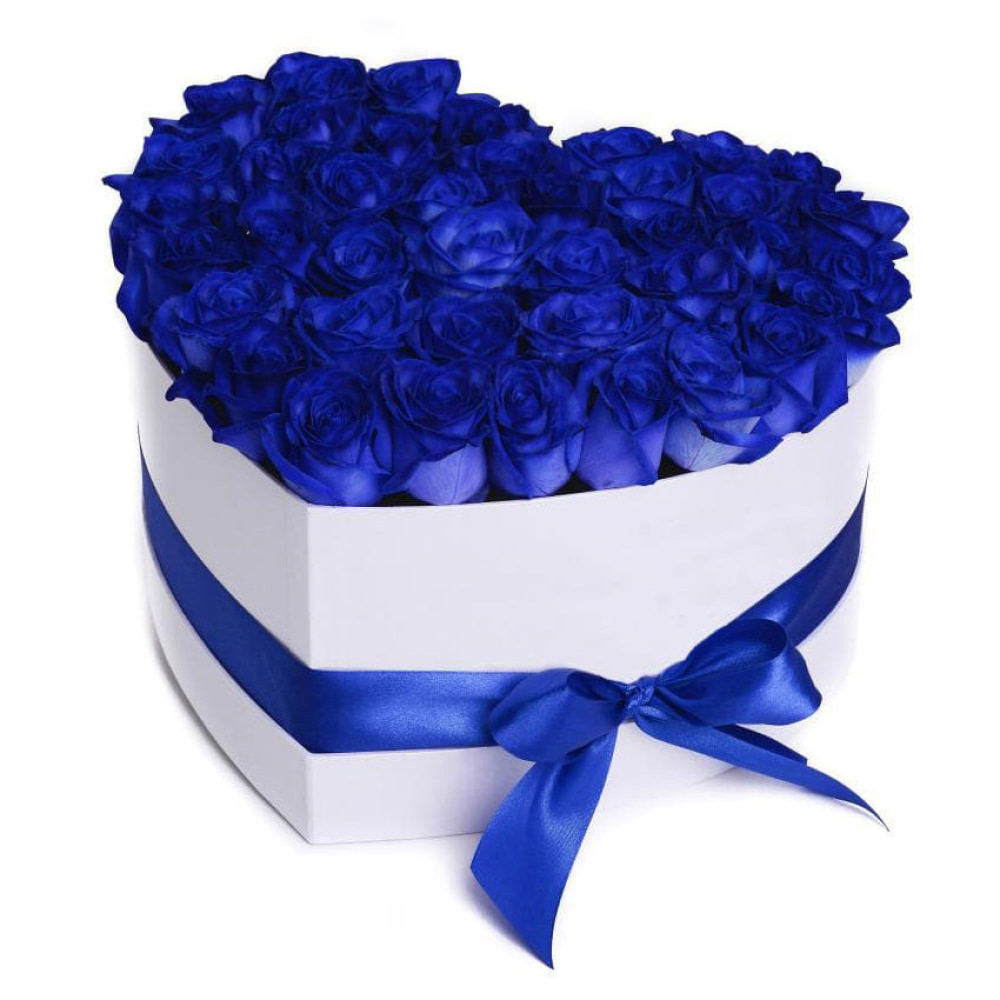 Цветы в коробке «Синее сердце» с гарантией качества, цены и быстрой доставки!