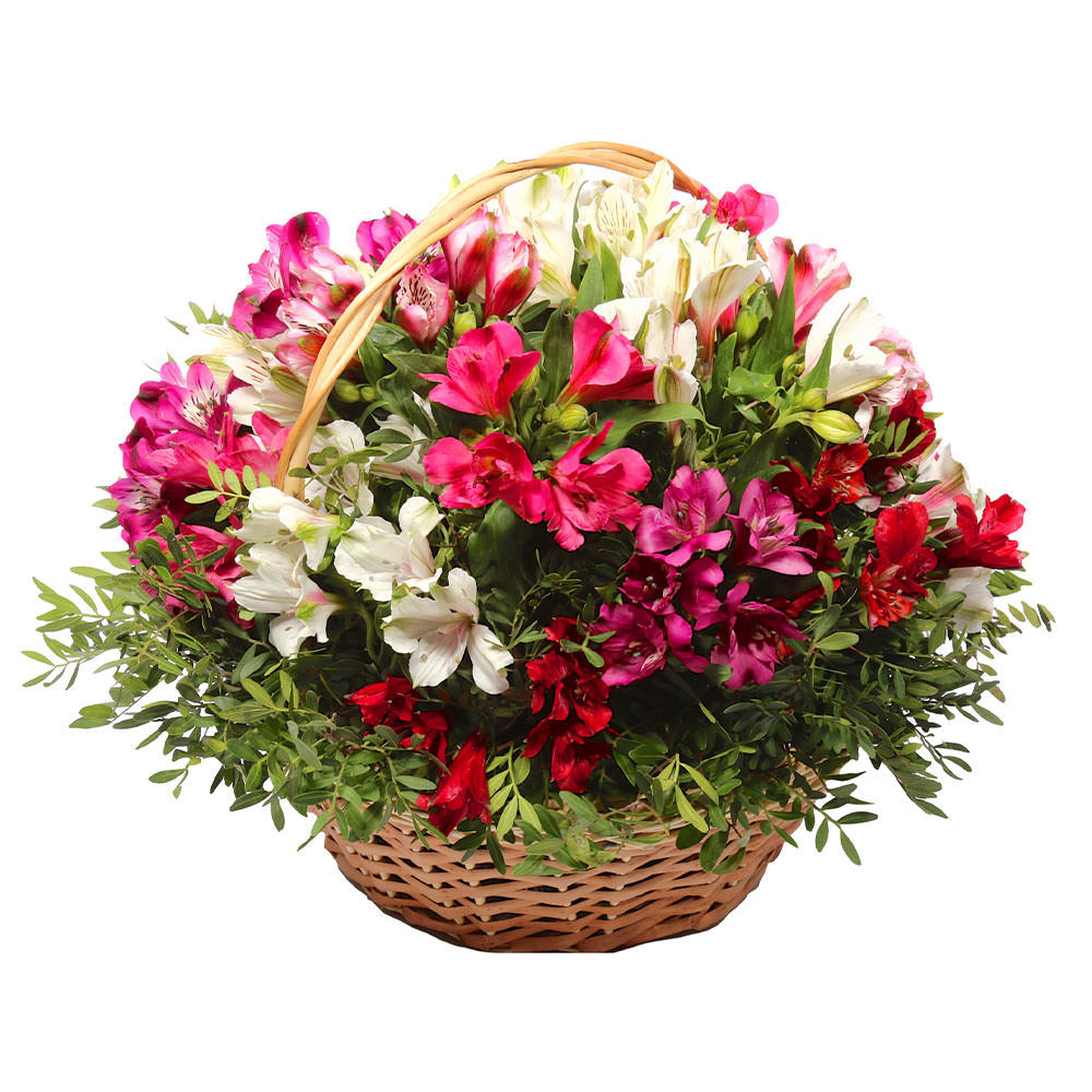 Цветы в корзинке «Краски альстромерий» с гарантией качества, цены и быстрой доставки!
