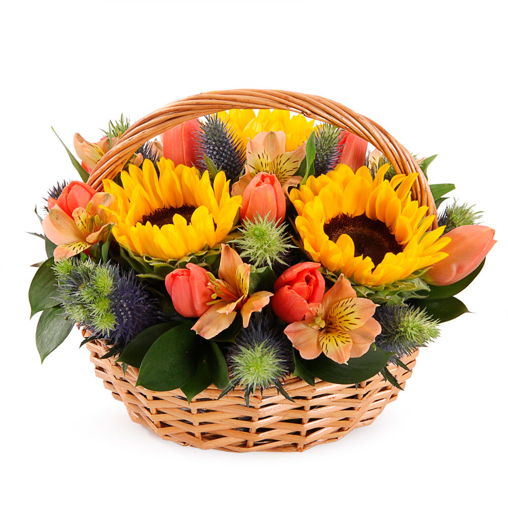 Цветы в корзинке «Солнечный день» с гарантией качества, цены и быстрой доставки!