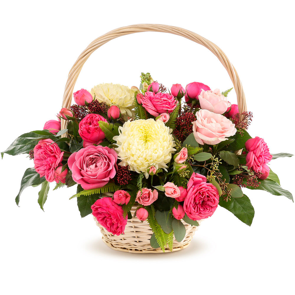 Цветы в корзинке «Цветочный коктейль» с гарантией качества, цены и быстрой доставки!